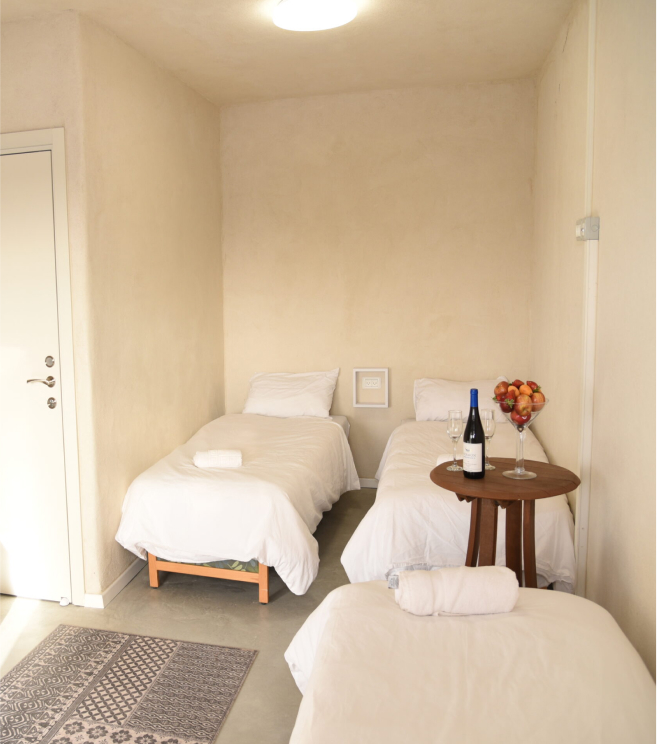 החדרים נמצאים במבנה בעל 2 קומות, עם מגוון חדרי אירוח. בכל קומה מרחב משותף עם שולחנות ומטבחון.